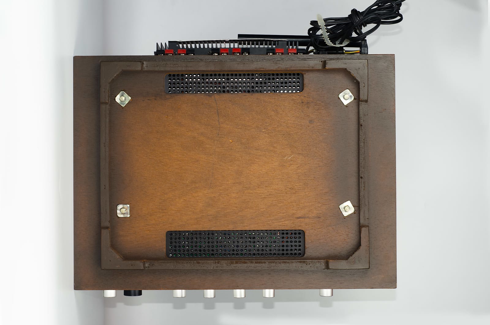 Upon inspection, the unit had scratchy controls, a dim dial, and some distortion in one channel. Therefore, it underwent servicing by our technician. Manufacturer used certain transistors in this model that are known to fail after 40 years, so all of these were replaced. This upgrade resolved the distortion issue. Additionally, several questionable capacitors were replaced.